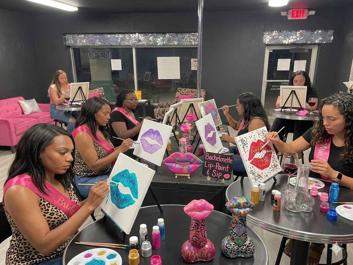 Ready to celebrate in style? Host an unforgettable bachelorette party for your group of 12 with creative activities, laughs, and a glamorous atmosphere at The Glitz & Glam of Art!